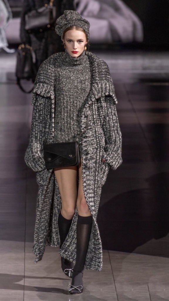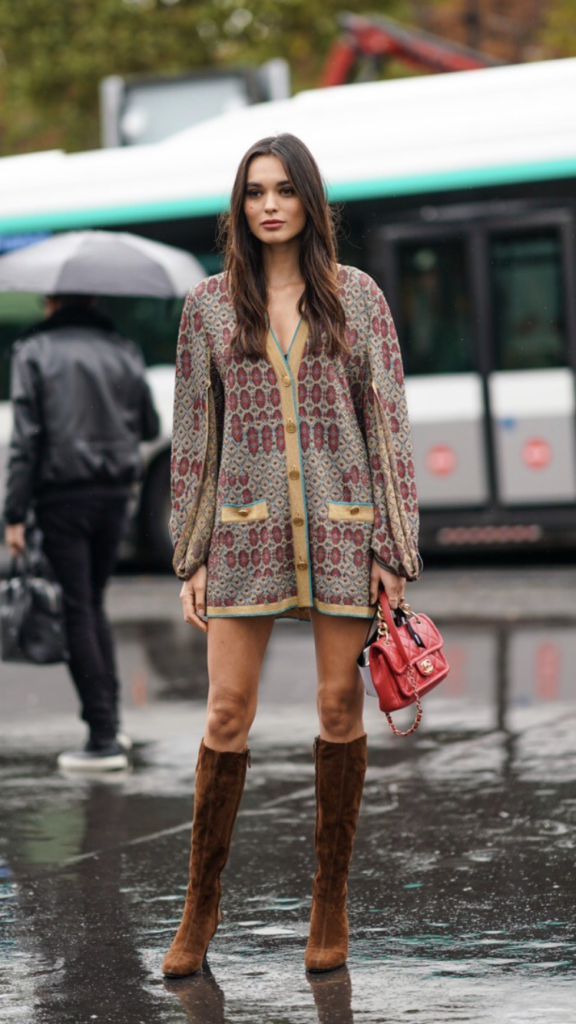 Consider wearing a more oversized cardigan as a dress for a modern take on the sweater dress.